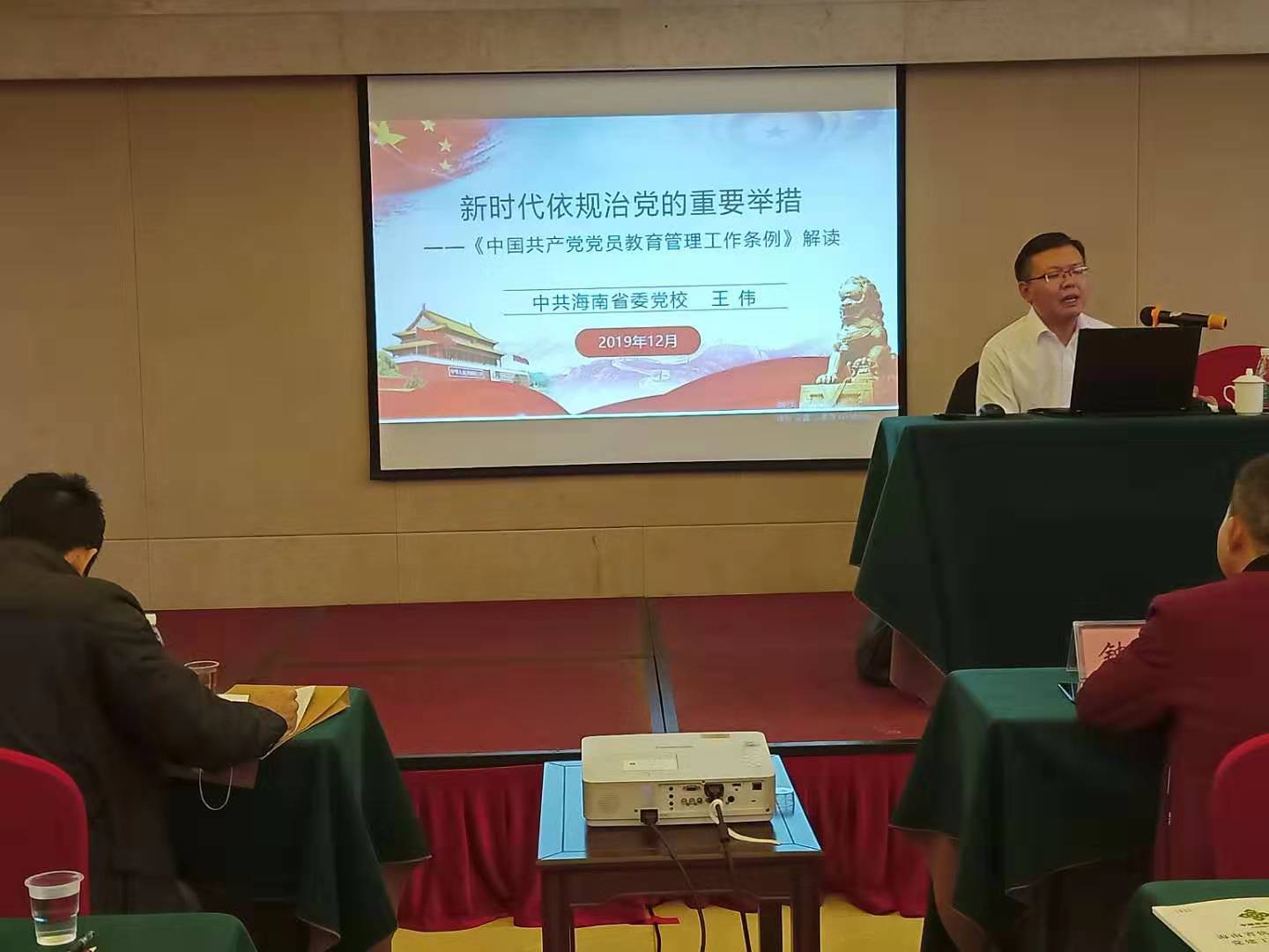 12月4日,全省供銷社系統(tǒng)黨內(nèi)法規(guī)暨公文規(guī)范專題培訓班在??谡匍_。本次培訓班是為了深入學習貫徹習近平總書記關(guān)于制度治黨、依規(guī)治黨的重要論述,學習黨章及新修訂制定的《中國共產(chǎn)黨黨內(nèi)法規(guī)制定條例》等黨內(nèi)法規(guī),進一步提升我省供銷社干部隊伍政治素養(yǎng)和業(yè)務(wù)能力,進一步增強“四個意識”、堅定“四個自信”、做到“兩個維護”。