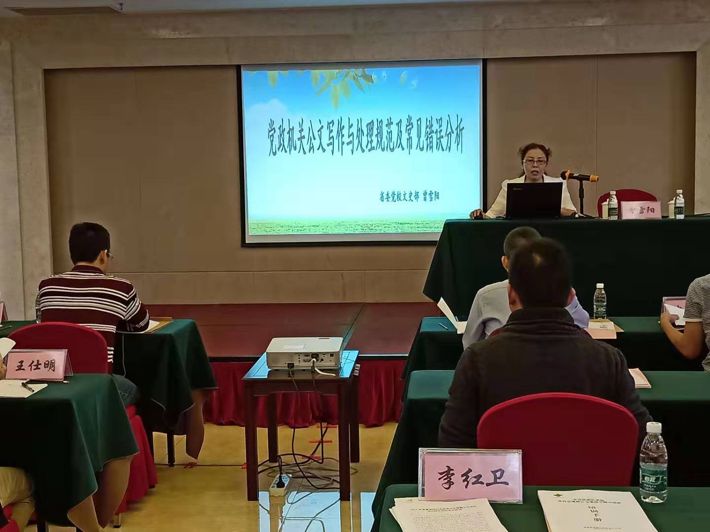 培訓班邀請了省委黨委畢普云教授、曾雪陽、王偉、梁科等4位老師進行授課。課程內(nèi)容緊緊圍繞黨的十九大和十九屆二中、三中全會精神,習近平總書記“4·13”重要講話和中央12號文件及其配套方案,省委七屆七次全會精神以及公文規(guī)范寫作等內(nèi)容開展。